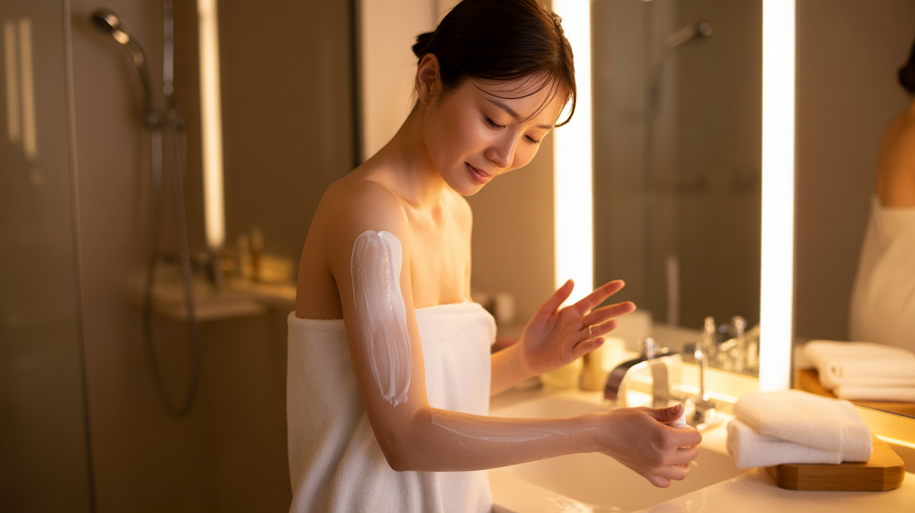 入浴後5〜10分の「全身保湿+黒ずみポイントケア」手順